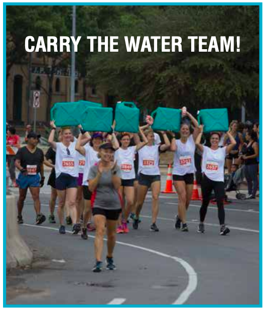 The average Burundian walks three miles for clean water. To simulate the daily journey of many Burundians, three Carry The Water teams of six people are invited to walk the 5K race route carrying water jugs weighing 30 to 50 pounds, similar to the ones used by families in Burundi.